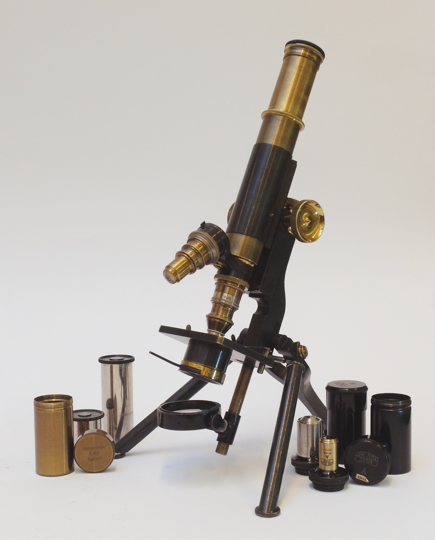 Fig. 2. Microscope portable, 1891-1910. Crédit Science Museum Group, Sir Henry Wellcome's Museum Collection, A55232 (https://collection.sciencemuseumgroup.org.uk/objects/co119151/portable-microscope-1891-1910).