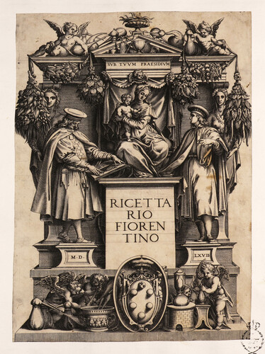 Fig. 4. Frontispice du Ricettario fiorentino, 1567, Académie royale des Beaux-Arts de San Fernando, Madrid